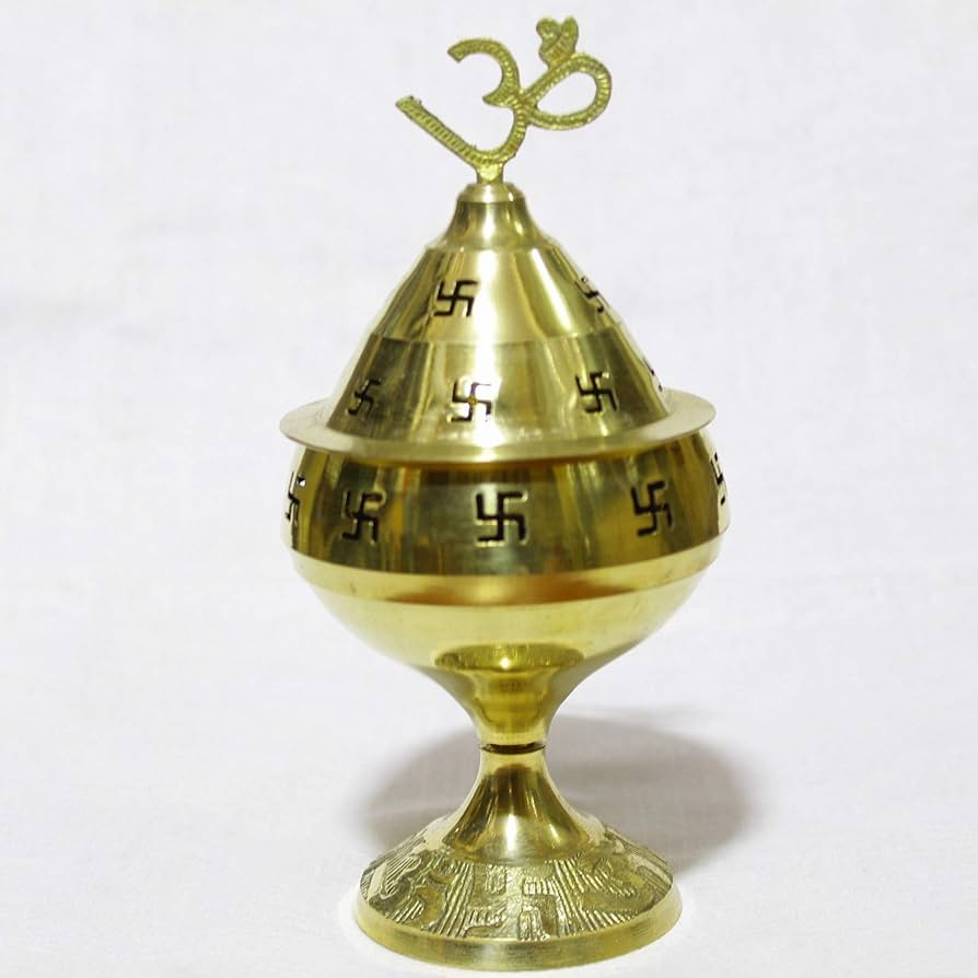 The Diya Is Fixed (Which Is Also Detachable) Inside This Round Ball Which Is Made Of Brass And Where The Swastika Symbol Is Carved With The Help Of A Cutwork. When The Diya Inside Is Lighted The Light Comes Out Through The Swastika Holes. It Also Has A lid On Top Of It So That The Flame Last Long.