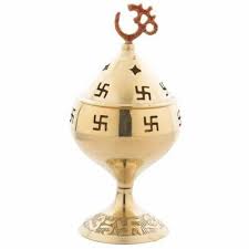 When The Diya Inside Is Lighted The Light Comes Out Through The Swastika Holes. It Also Has A lid On Top Of It So That The Flame Last Long